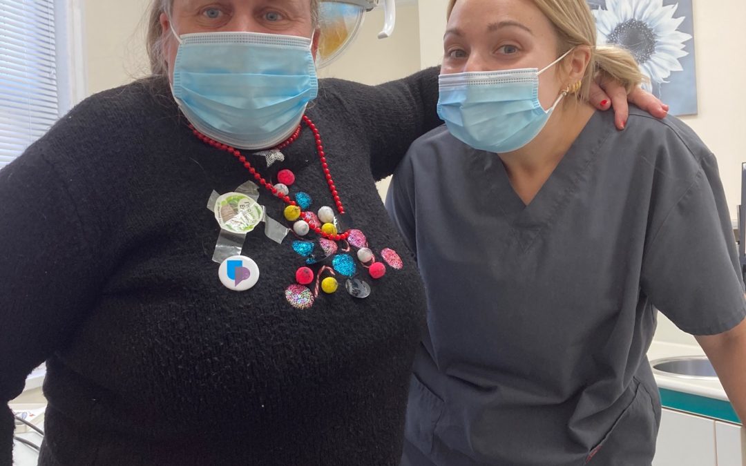 One of our happy patients getting into the Christmas spirit with some of the member of staff.
